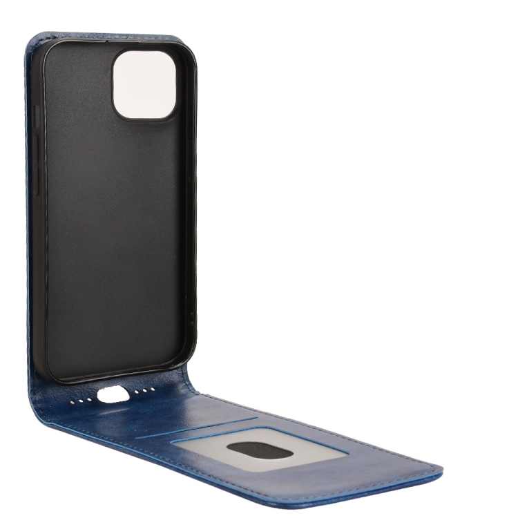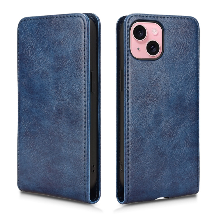 Funda de Cuero con Tapa Vertical Magnética para iPhone 15 (Azul)