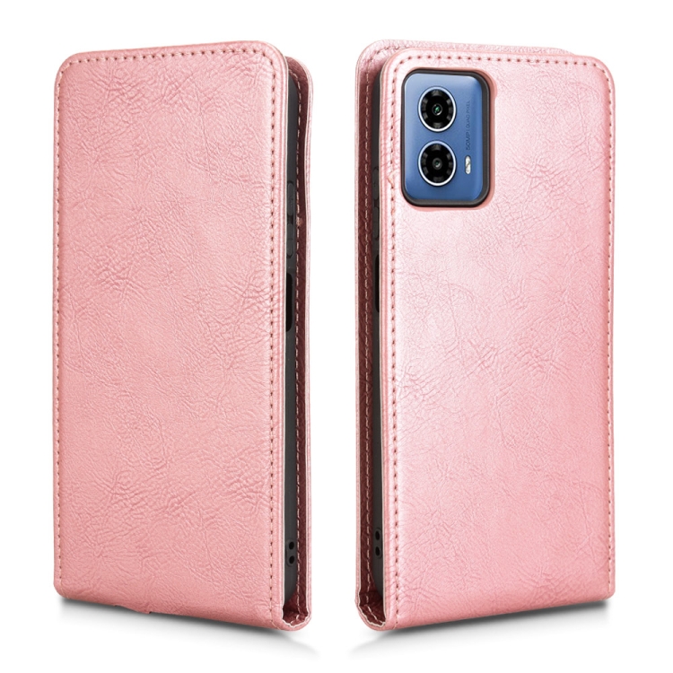 Funda de Cuero con Tapa Vertical Magnética para Motorola Moto G34 5G y G45 5G (Oro Rosa)