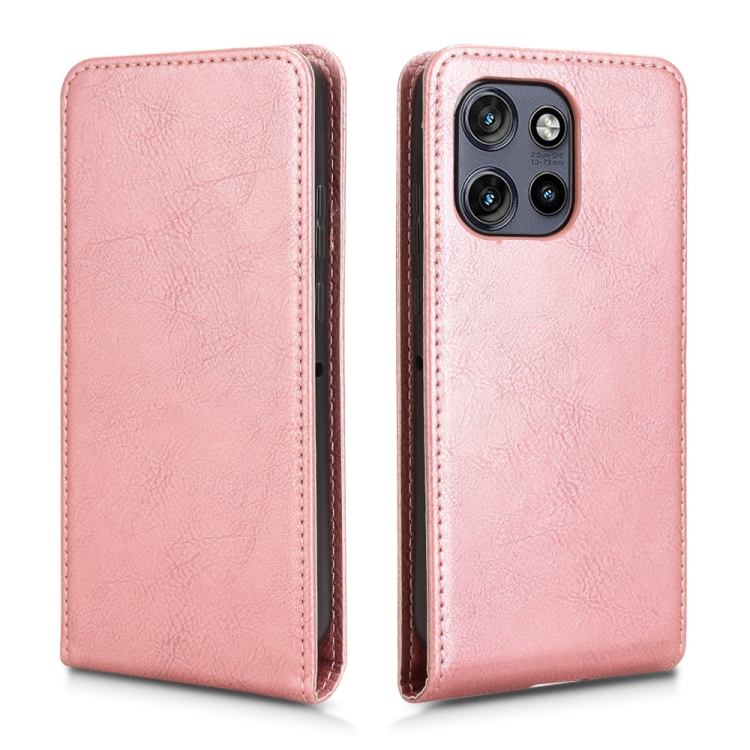 Funda de Cuero con Tapa Vertical Magnética para Motorola Moto S50 5G Edge 50 Neo 5G (Oro Rosa)