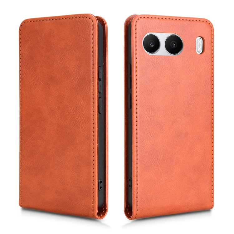 Funda de Cuero con Tapa Vertical Magnética para OnePlus Nord 4 5G (Marrón)