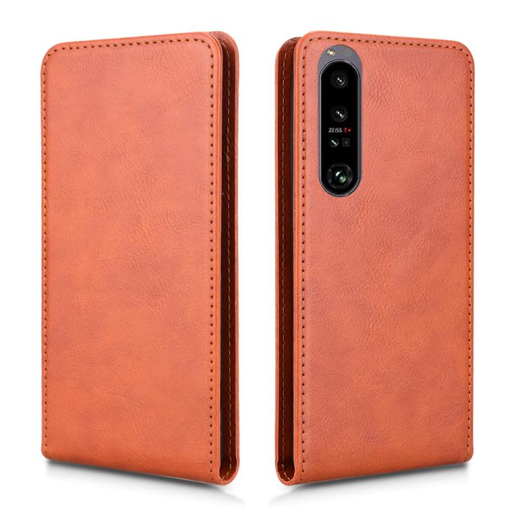 Funda de Cuero con Tapa Vertical Magnética para Sony Xperia 1 IV (Marrón)