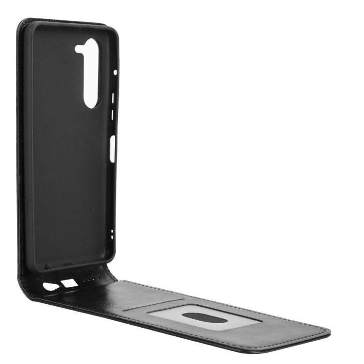 Funda de Cuero con Tapa Vertical Magnética para Fujitsu Arrows F-51E We2 Plus (Negra)