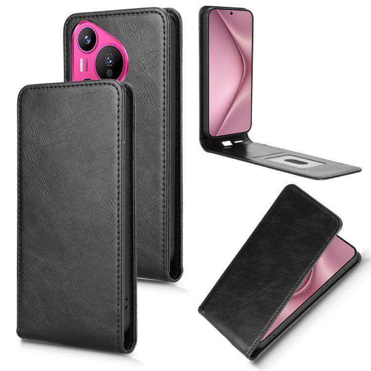 Funda de Cuero con Tapa Vertical Magnética para Huawei Pura 70 5G (Negra)