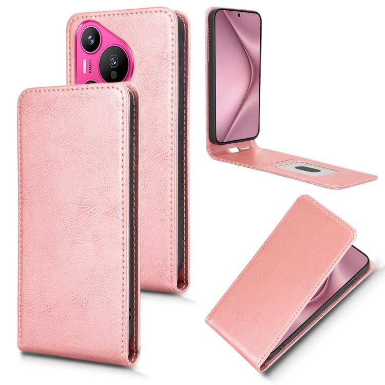 Funda de Cuero con Tapa Vertical Magnética para Huawei Pura 70 5G (Oro Rosa)