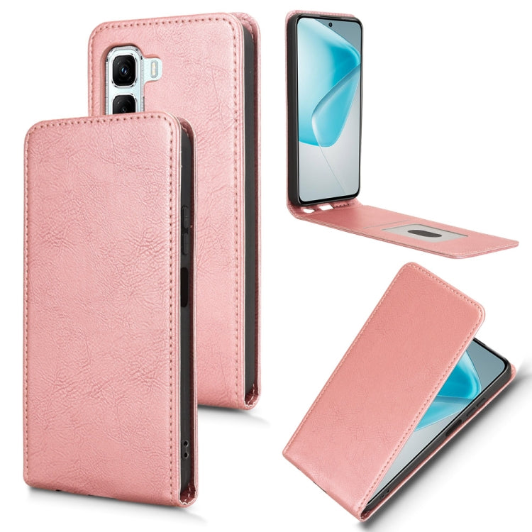 Funda de Cuero con Tapa Vertical Magnética para Infinix Hot 50 5G (Oro Rosa)