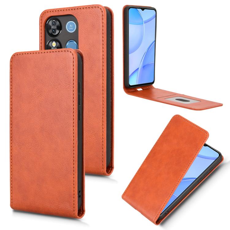 Funda de Cuero con Tapa Vertical Magnética para Teléfono Oukitel C57S (Marrón)