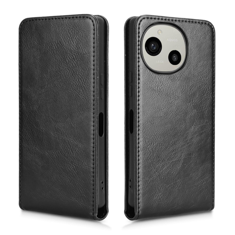 Funda de Cuero con Tapa Vertical Magnética para Sharp Aquos R9 (Negro)