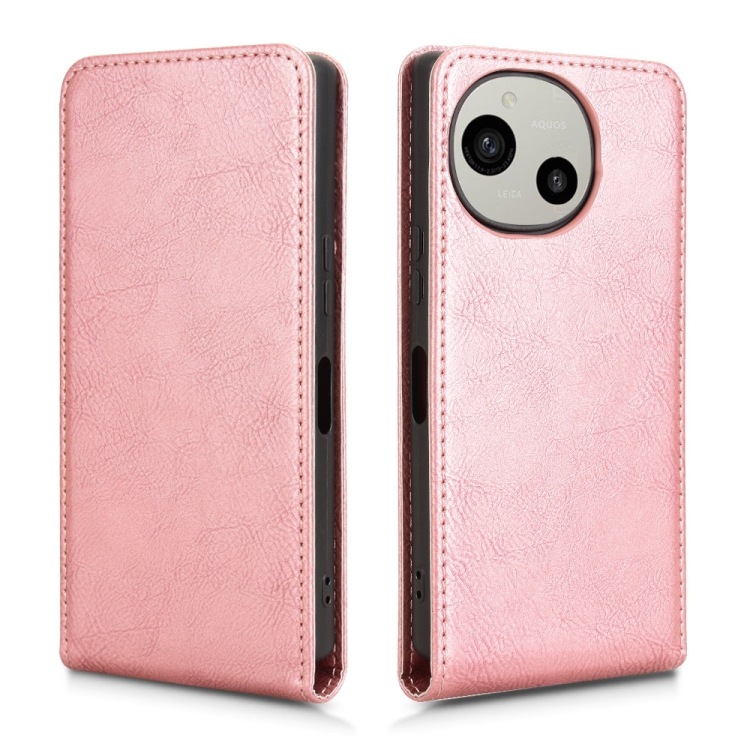 Funda de Cuero con Tapa Vertical Magnética para Sharp Aquos R9 (Oro Rosa)