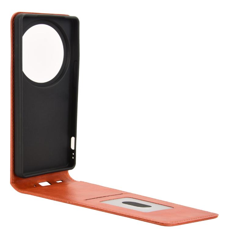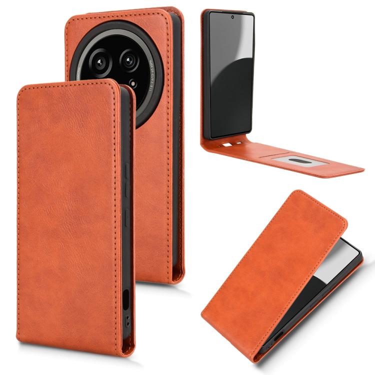 Funda de Cuero para Sharp Aquos R9 Pro con Tapa Vertical Magnética (Marrón)