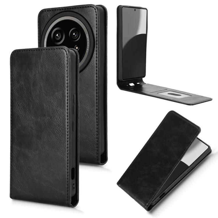 Funda de Cuero para Sharp Aquos R9 Pro con Tapa Vertical Magnética (Negro)