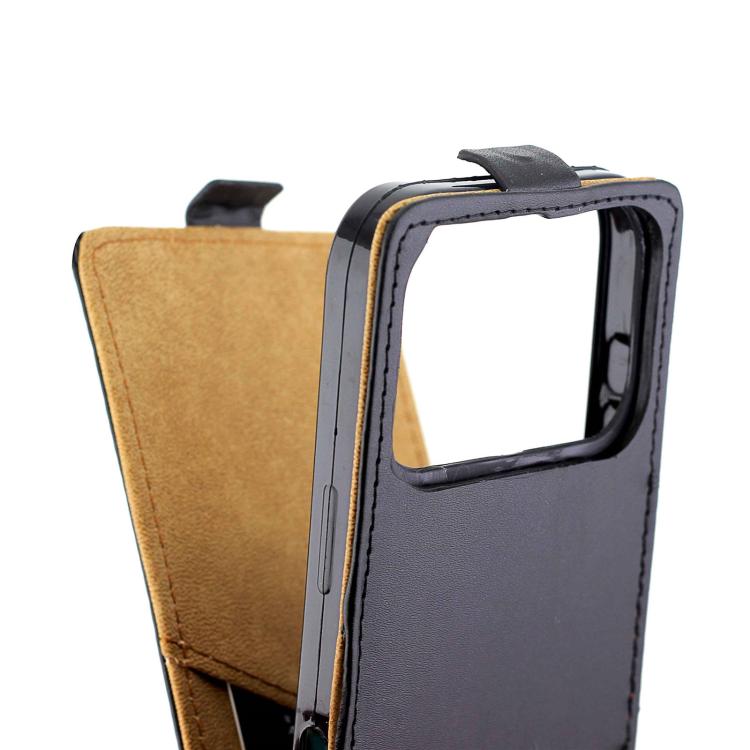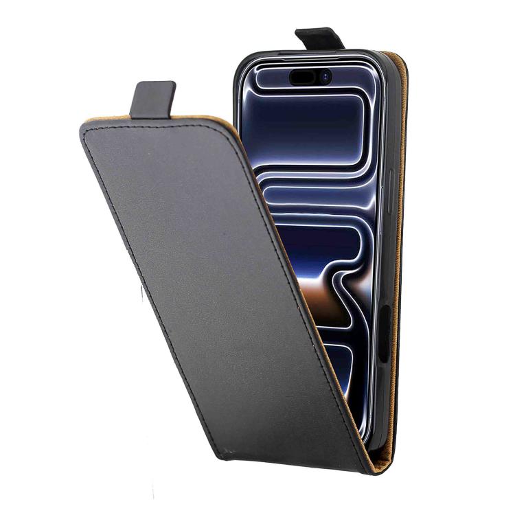 Funda de cuero con tapa vertical para iPhone 17 Pro con ranura para tarjetas (negra)