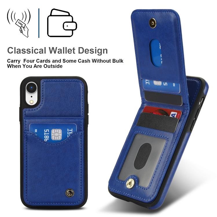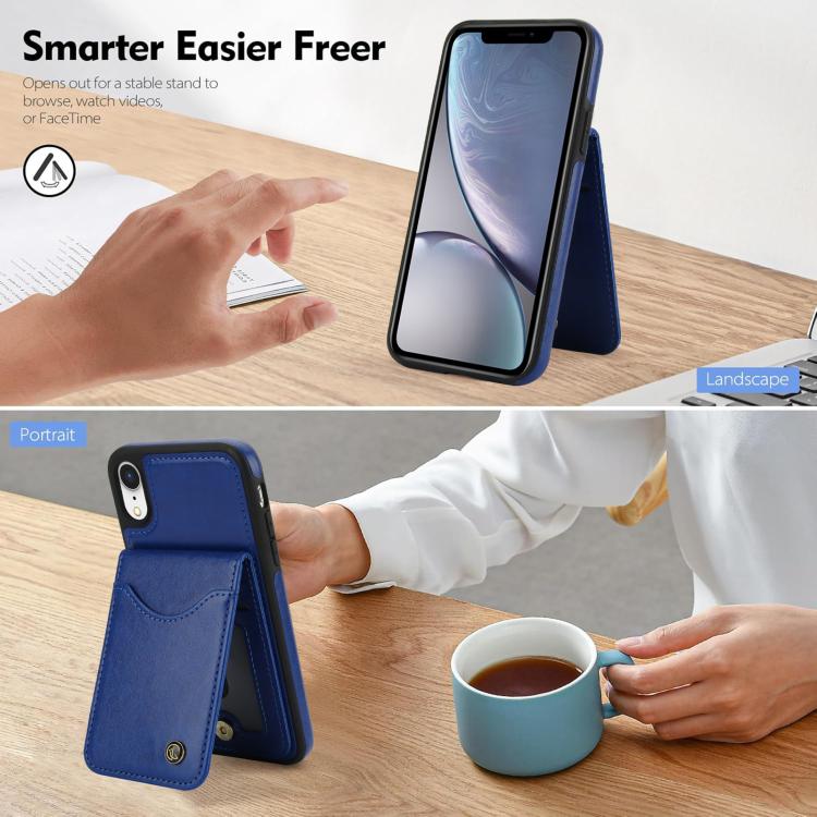 Funda de Cuero con Tapa Vertical para iPhone Xr Awquer con Tarjetero (Azul)