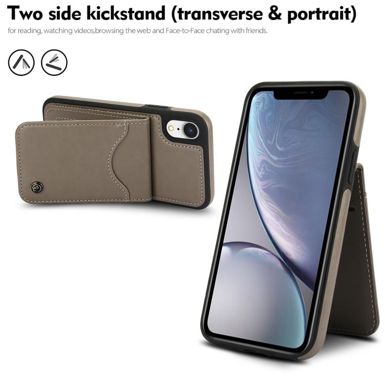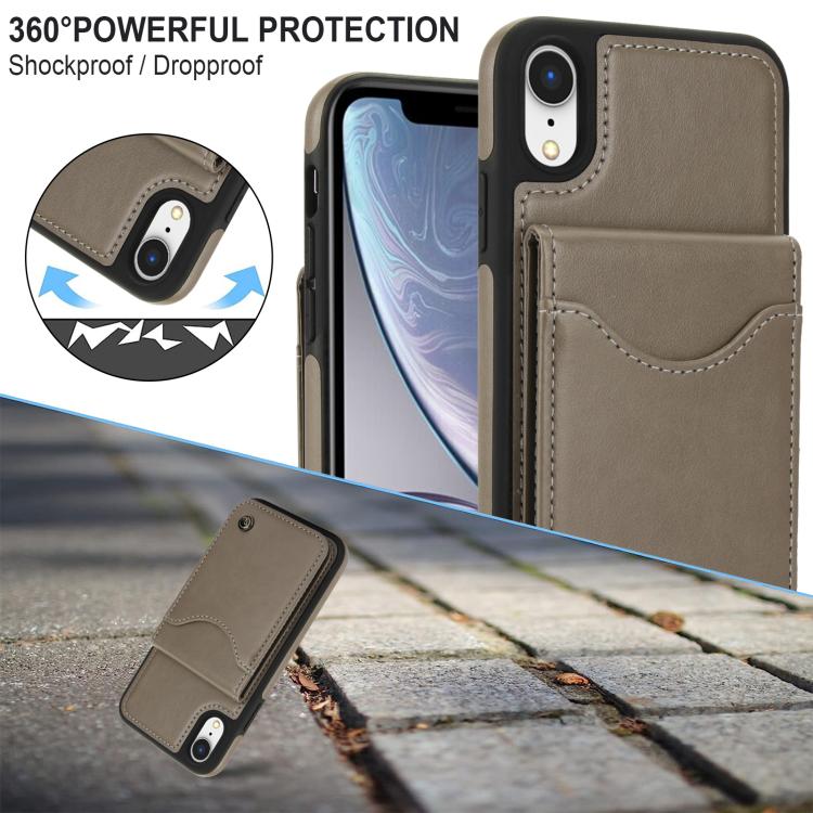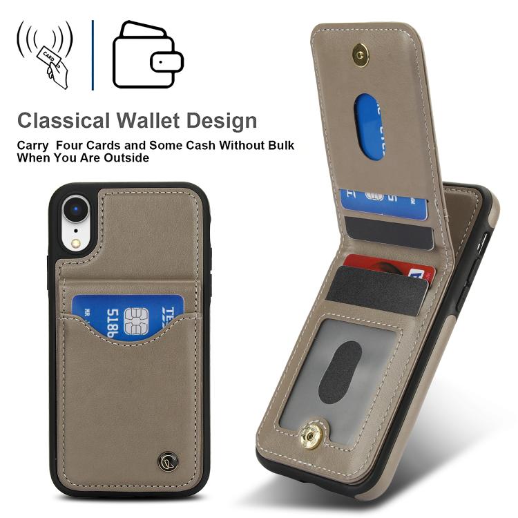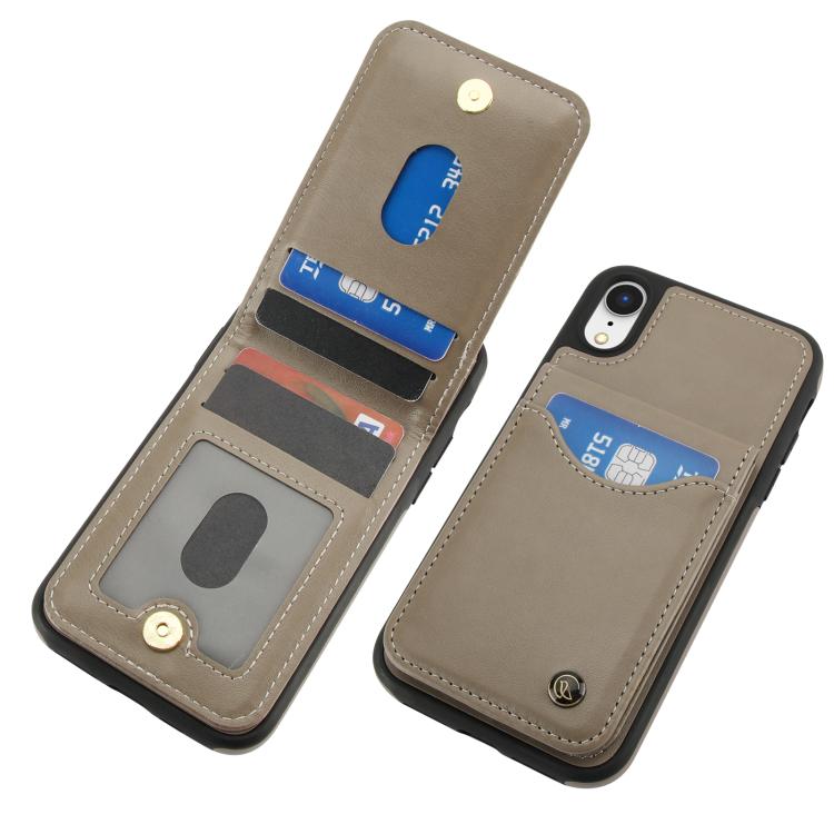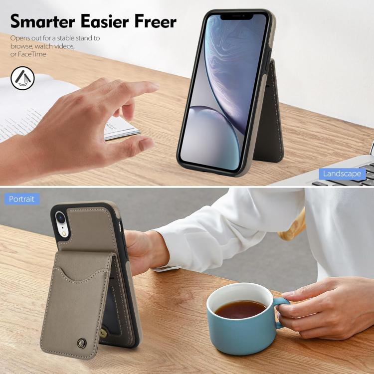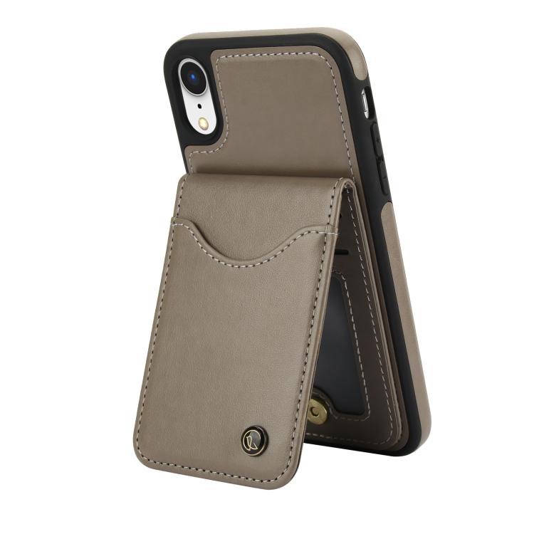 Funda de Cuero con Tapa Vertical Awquer para iPhone Xr con Tarjetero (Gris)
