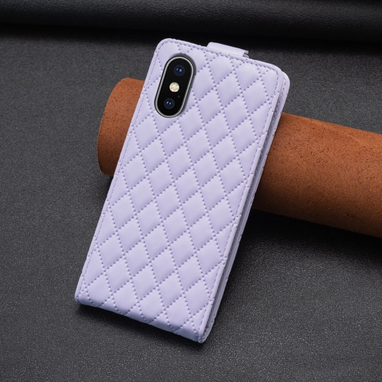Funda de Cuero con Tapa Vertical para iPhone Xs Max Diamond Lattice (Púrpura)