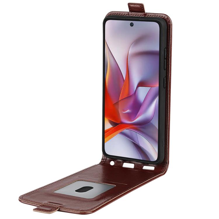 Funda de Cuero con Tapa Vertical para Motorola Moto G 5G 2025 R64 (Marrón)