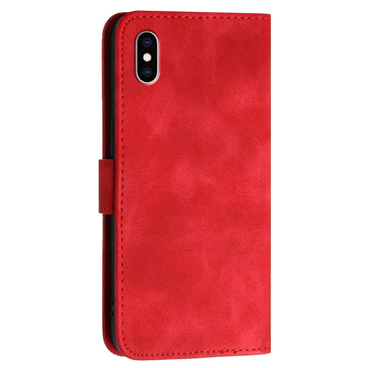 Funda de Cuero con Tapa y Cordón para iPhone Xs Max Yx0080 Diseño Mariposa Cuadrícula (Rojo)