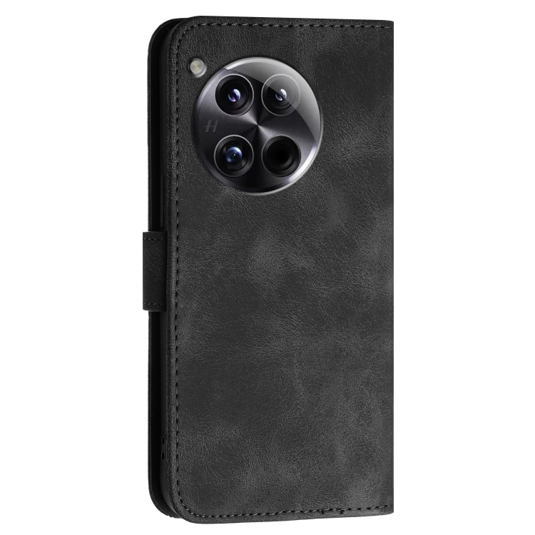 Funda de Cuero con Tapa y Cordón para OnePlus 12 Yx0080 con Diseño en Relieve (Negro)