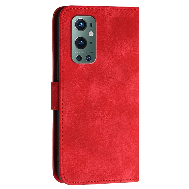 Funda de Cuero con Tapa y Cordón para OnePlus 9 Pro Yx0080 Diseño Mariposa Cuadrícula (Rojo)