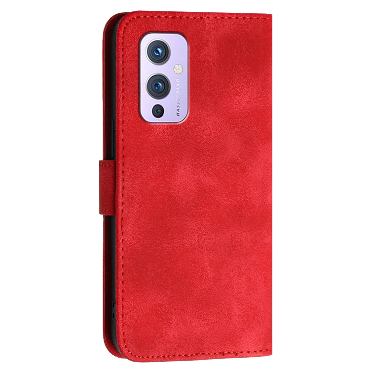 Funda de Cuero con Tapa y Cordón para OnePlus 9 Yx0080 con Diseño Mariposa (Rojo)