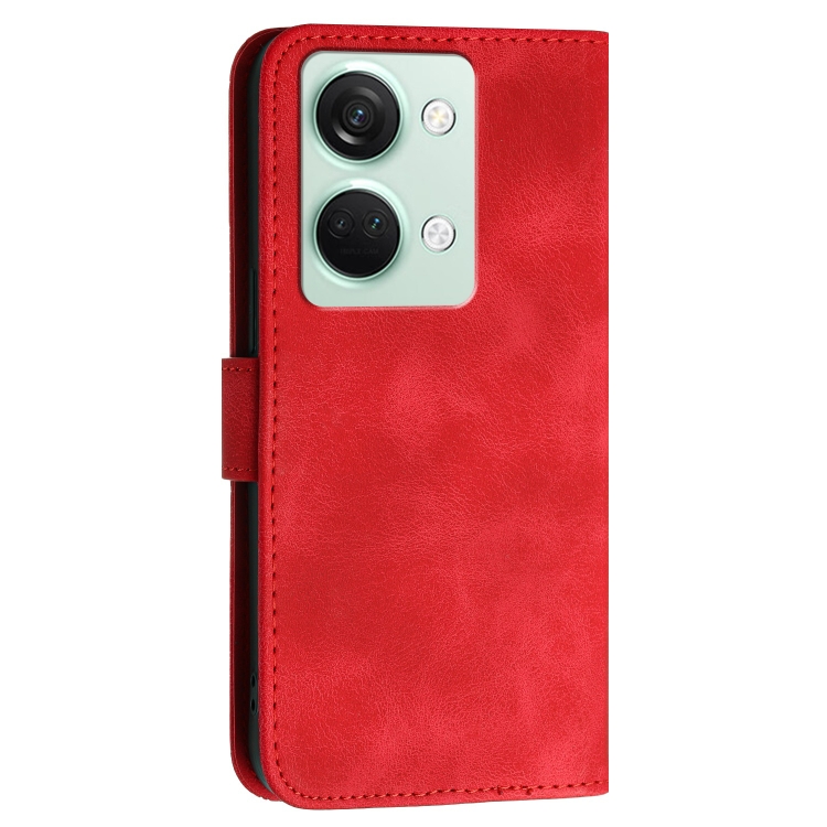 Funda de Cuero con Tapa y Cordón para OnePlus Ace 2V Yx0080 con Diseño Relieve Mariposa (Rojo)