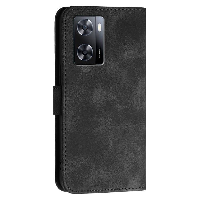 Funda de Cuero con Tapa y Cordón para Oppo A57 4G Yx0080 con Diseño En Relieve de Mariposa y Cuadrícula (Negro)