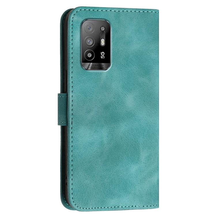 Funda de Cuero con Tapa y Cordón para Oppo A94 5G/F19 Pro Yx0080 con Diseño En Relieve de Mariposa y Cuadrícula (Azul Claro)