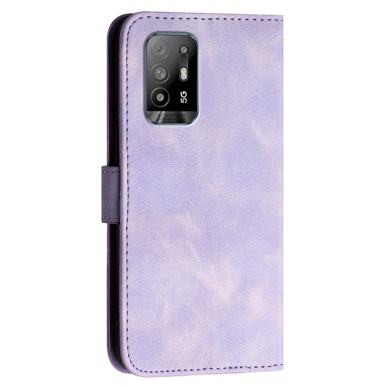 Funda de Cuero con Tapa y Cordón para Oppo A95 5G/Reno5 Z Yx0080 con Diseño En Relieve de Mariposa y Cuadrícula (Morado Claro)