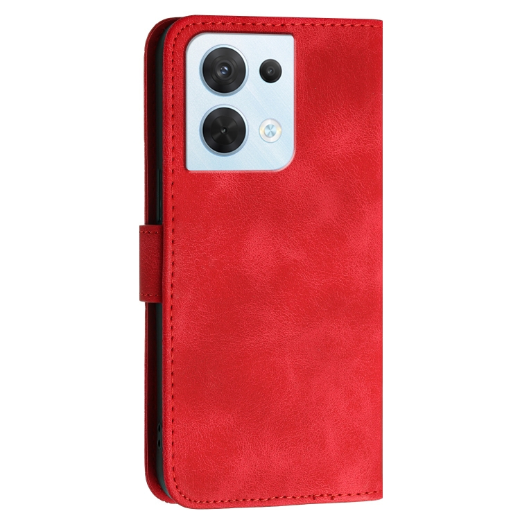 Funda de Cuero con Tapa y Cordón para Oppo Reno8 5G Global Yx0080 con Diseño En Relieve de Mariposa y Cuadrícula (Rojo)