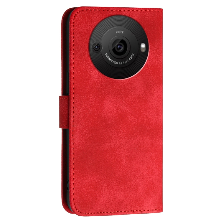 Funda de Cuero con Tapa y Cordón para Sharp Aquos R8 Pro Sh-51D Yx0080 Diseño Relieve Mariposa (Rojo)