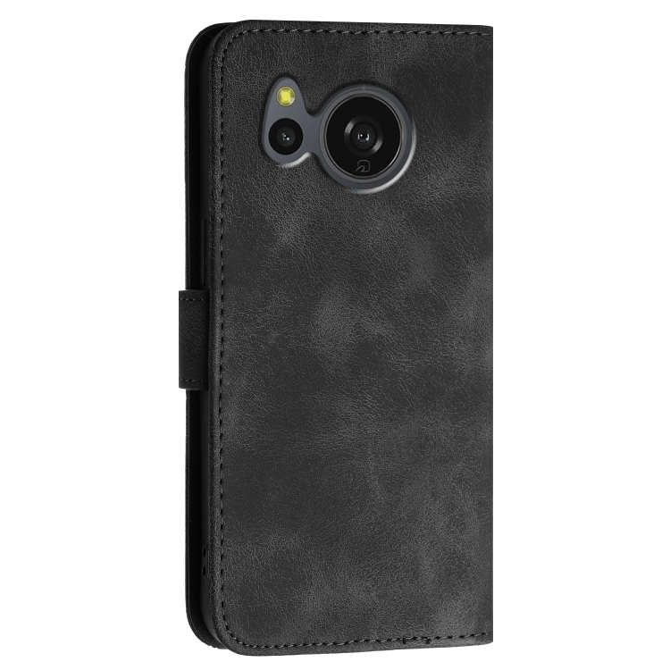 Funda de Cuero con Tapa y Cordón para Sharp Aquos Sense7 Yx0080 con Diseño En Relieve (Negro)