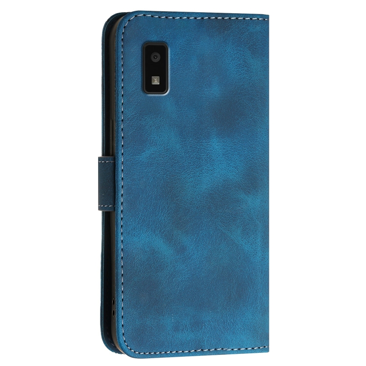 Funda de Cuero con Tapa y Cordón para Sharp Aquos Wish Yx0080 con Diseño en Relieve (Azul Oscuro)