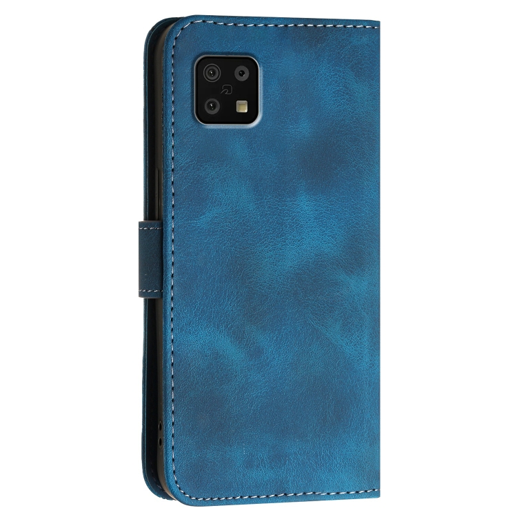 Funda de Cuero con Tapa y Cordón para Sharp Aquos Sense6 Yx0080 con Diseño Relieve Mariposa (Azul Oscuro)