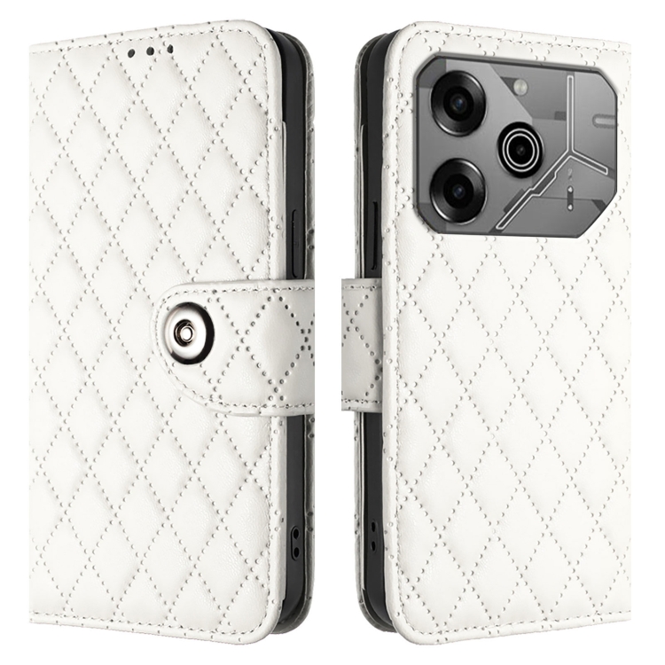 Funda de Cuero con Tapa y Cordón para Tecno Pova 6 Neo con Textura Rombínica (Blanco)