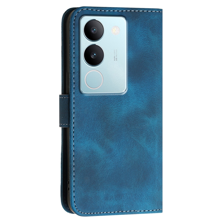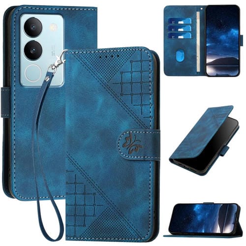 Funda de Cuero con Tapa y Cordón para Vivo V29 Pro Yx0080 con Diseño En Relieve de Mariposa y Cuadrícula (Azul Oscuro)