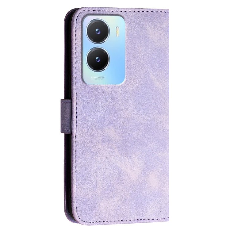 Funda de Cuero con Tapa y Cordón para Vivo Y02S 4G Global Yx0080 con Diseño En Relieve de Mariposa y Cuadrícula (Morado Claro)