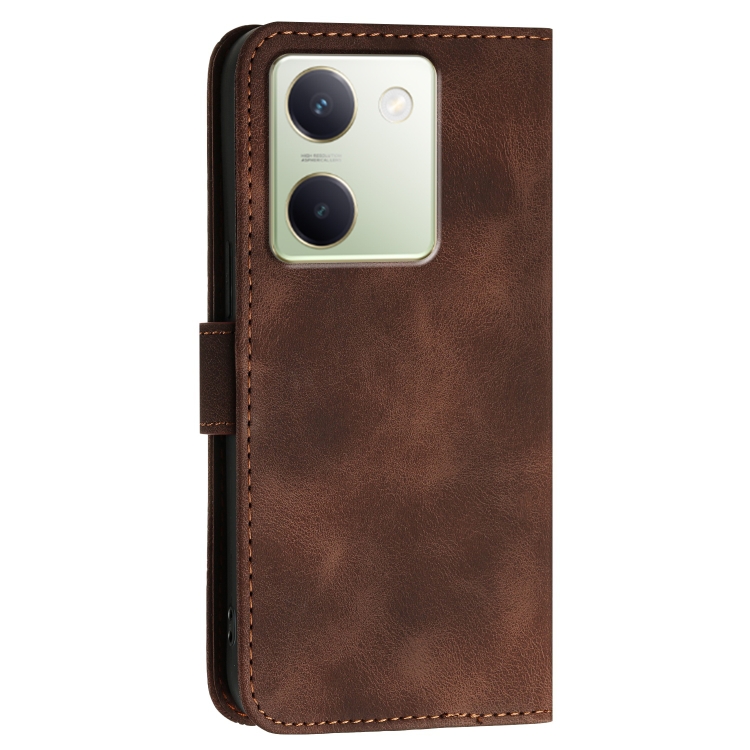 Funda de Cuero con Tapa y Cordón para Vivo Y100 5G Global Yx0080 con Diseño En Relieve de Mariposa y Cuadrícula (Café)