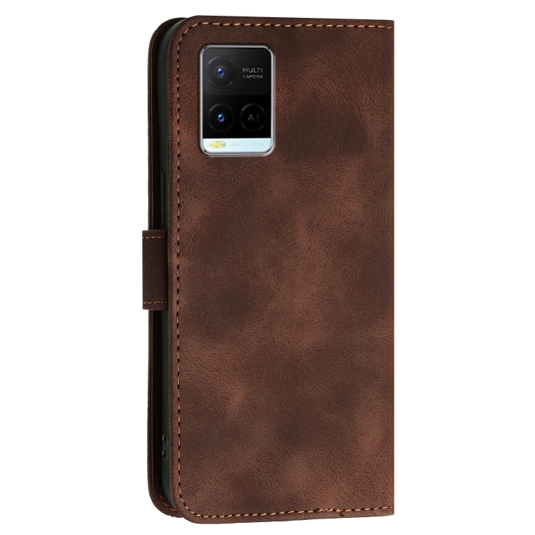 Funda de Cuero con Tapa y Cordón para Vivo Y21 / Y33S / Y21S Yx0080 con Diseño En Relieve de Mariposa y Cuadrícula (Café)