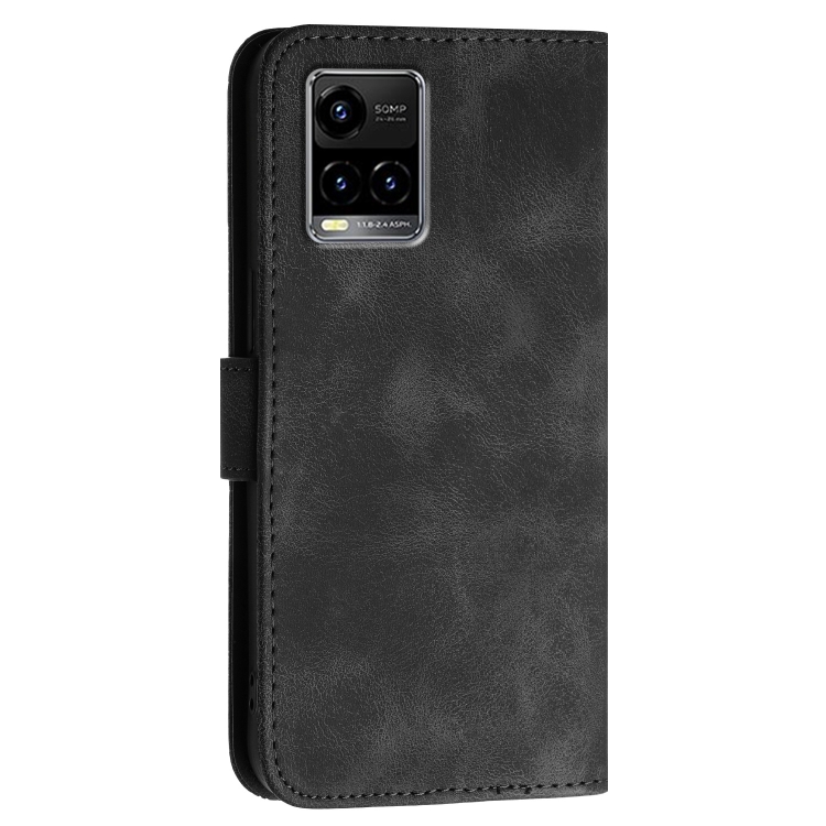 Funda de Cuero con Tapa y Cordón para Vivo Y21S/Y21T Yx0080 con Diseño En Relieve de Mariposa y Cuadrícula (Negro)