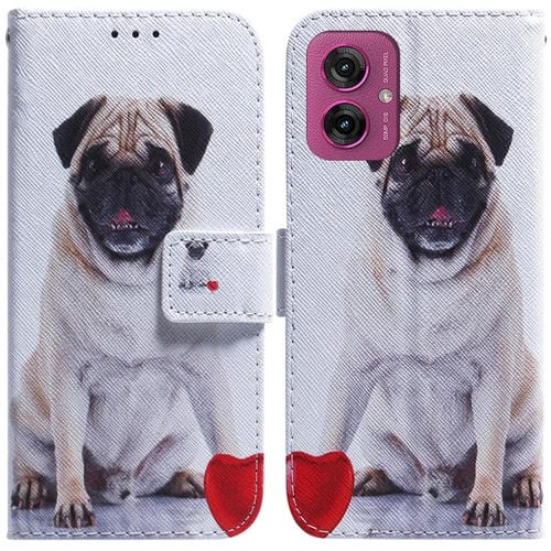 Funda de Cuero con Tapa y Dibujo a Color para Motorola Moto G55 (Pug)