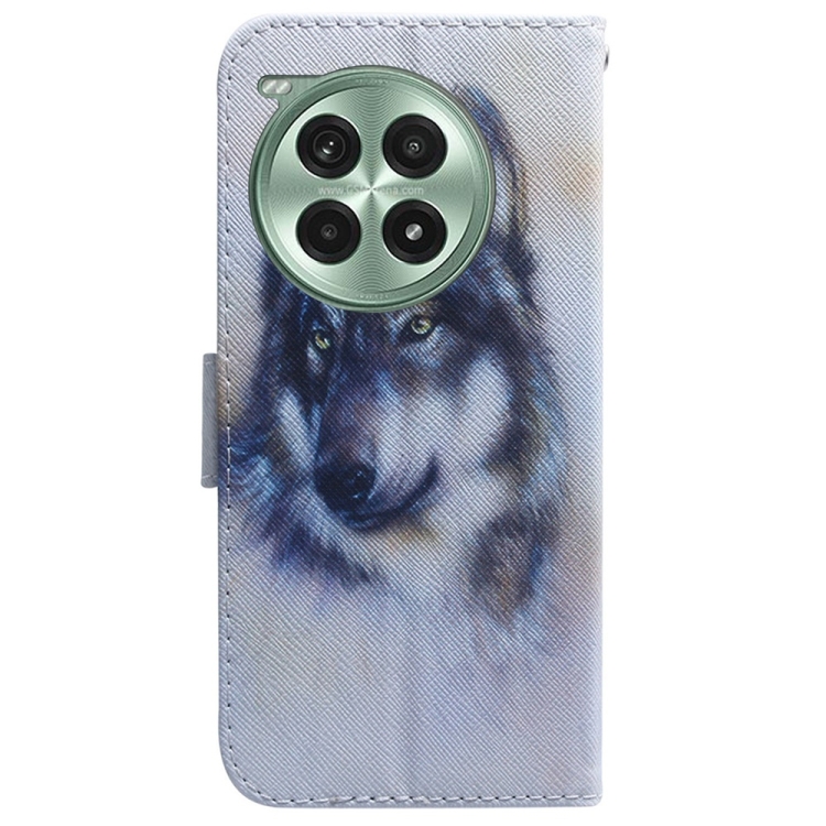 Funda de Cuero con Tapa y Dibujo a Color para OnePlus Ace 3 Pro (Lobo Blanco)