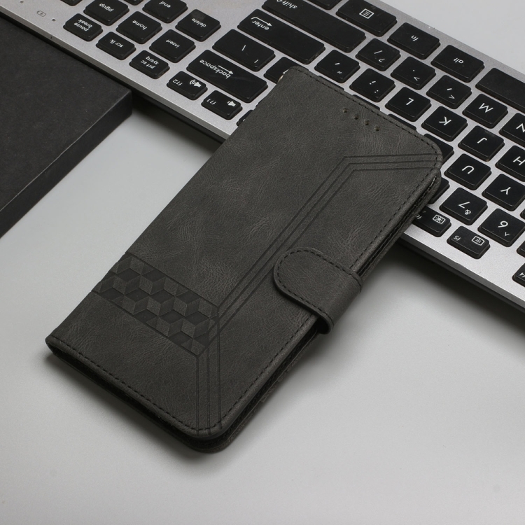 Funda de Cuero con Tapa y Diseño Cúbico para Motorola Moto G Play 2025/G Power 2025 (Negra)