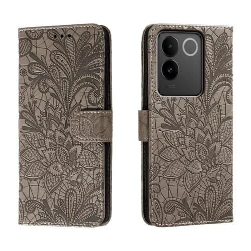 Funda de Cuero con Tapa y Diseño de Flores En Relieve para Vivo S17E (Gris)