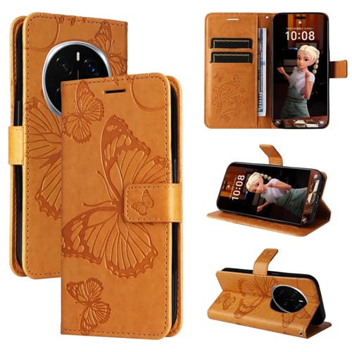Funda de Cuero con Tapa y Mariposa en Relieve 3D para Honor Magic7 Pro (Amarillo)