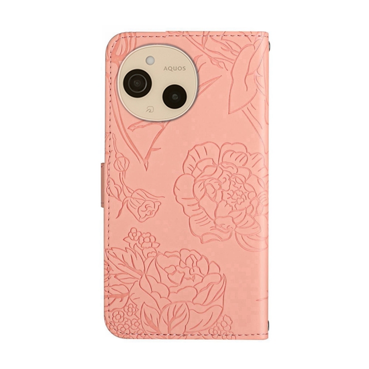 Funda de Cuero con Tapa para Sharp Aquos Sense9 Diseño Mariposas en Relieve (Rosa)