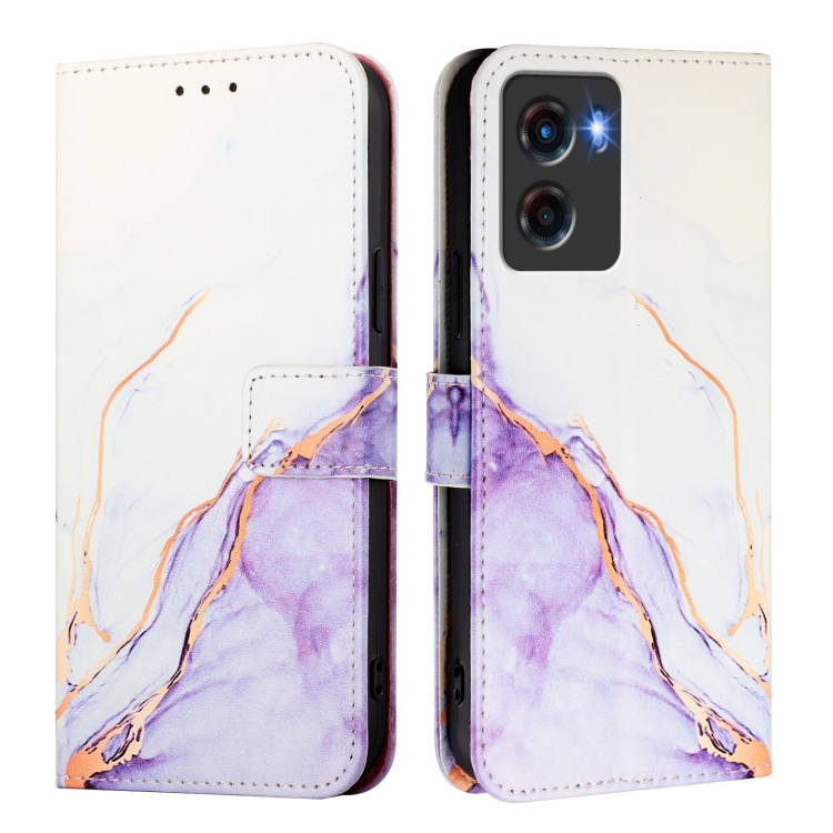 Funda de Cuero con Tapa y Diseño Mármol para Motorola Moto G05 Pt003 (Blanco y Morado)