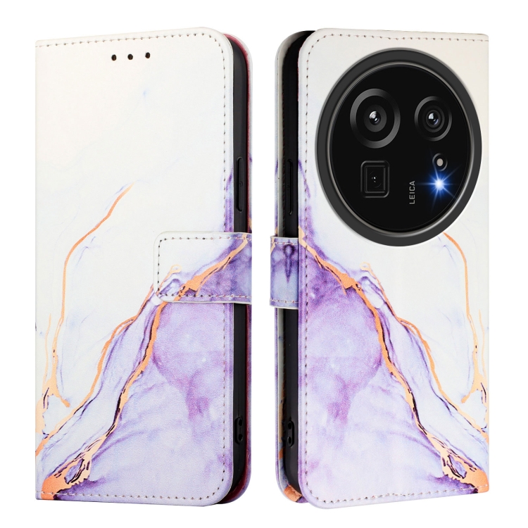Funda de Cuero con Tapa para Sharp Aquos R9 Pro Sh-54E Pt003 con Diseño Mármol (Blanco y Morado)