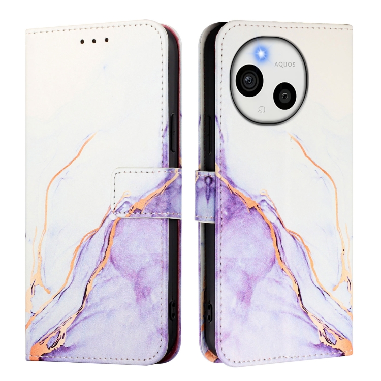 Funda de Cuero con Tapa para Sharp Aquos Sense9 Plus Pt003 con Diseño de Mármol (Blanco y Morado)