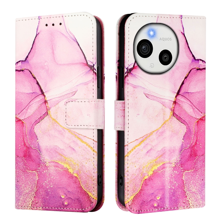 Funda de Cuero con Tapa para Sharp Aquos Sense9 Plus Pt003 con Diseño de Mármol (Rosa, Morado y Dorado)