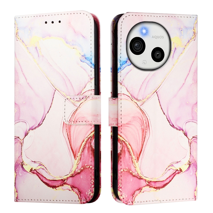 Funda de Cuero con Tapa para Sharp Aquos Sense9 Pt003 con Diseño Mármol (Oro Rosa)