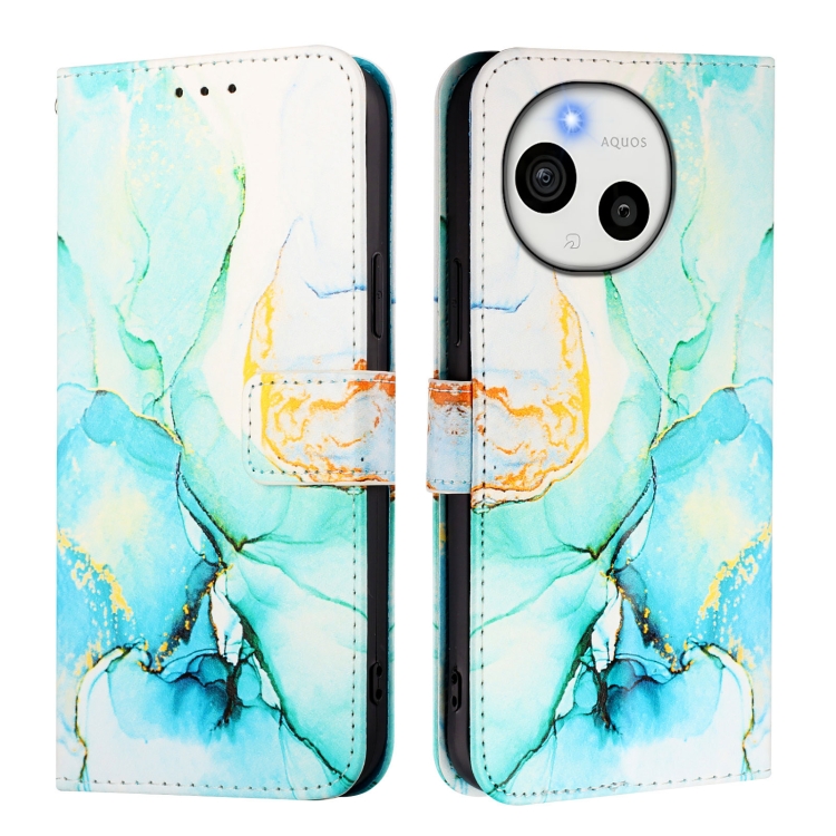 Funda de Cuero con Tapa para Sharp Aquos Sense9 Pt003 Diseño Mármol (Verde)
